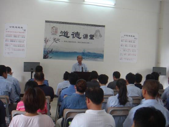 企業外來務工人員“道德講堂”由廣東金億合金製品有限公司執行董事陳華明主講,他講述打工族身邊好人助人為樂、見義勇為、誠實守信、愛崗敬業、孝老愛親等凡人善舉的道德故事,宣揚“平民英雄”的先進事蹟,並通過講堂“唱歌曲、學英模、誦經典、發善心、送吉祥”等形式向外來務工人員傳播道德理念,使得企業員工對講文明道德的人感到可親、可敬、可信、可學,從而提高自己的道德素養,形成好人好事你講我講大家講,你做我做大家做的良好社會氛圍。